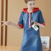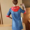 Đầm jean phối nón in chữ fashion thiết kế tay ngắn, điểm nhấn là phần phối nón in chữ nổi bật, không chỉ giúp người mặc thêm phần cuốn hút mà nón có thể bảo vệ làn da mỗi khi đi dưới trời nắng.